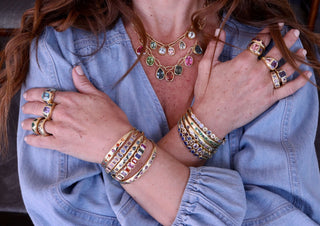 The Lauren K Collection is comprised entirely of handpicked gemstones, crafted in New York City of 18 karat gold, and finished with delicate micro pave. The collection of mostly one-of-a-kind pieces is meant to be layered, stacked and worn everyday to celebrate your unique effortless style.