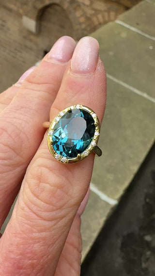Oval Blue Topaz and Pear Shaped Aquamarine Triad Ring